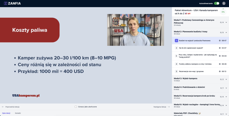 Właśnie dlatego stworzyliśmy kompleksowy kurs online, który prowadzi krok po kroku przez cały proces planowania i podróży kamperem po USA i Kanadzie.